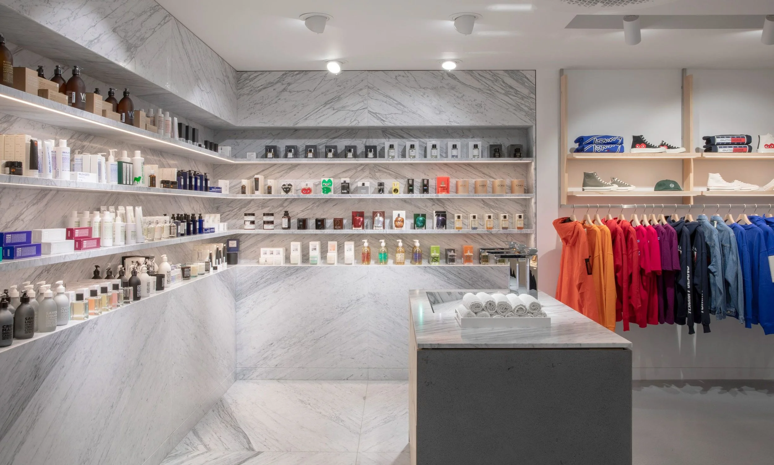 Inspired by London’s cultural energy, the END. flagship integrates raw materials, curated displays, and architectural detailing to reflect the city’s dynamic fashion and creative scene.