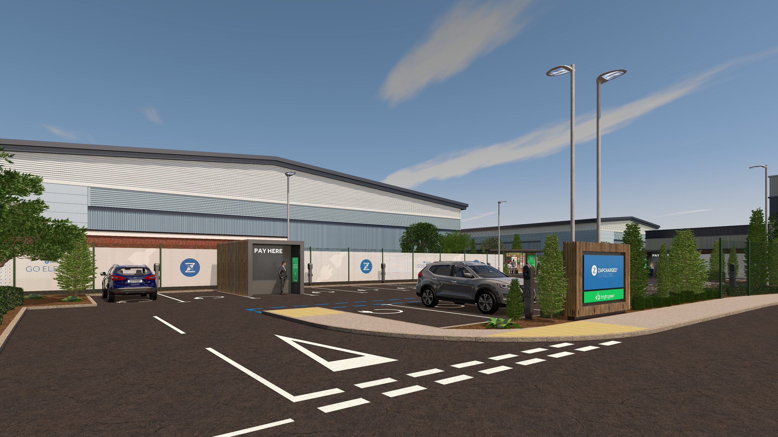 Our design concept for the EV charging station collaboration between <b>green x Zapped embodies sustainability and innovation, featuring a sleek, modern aesthetic that seamlessly integrates with its environment.