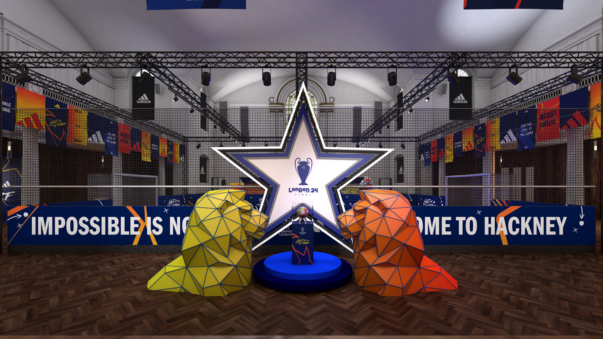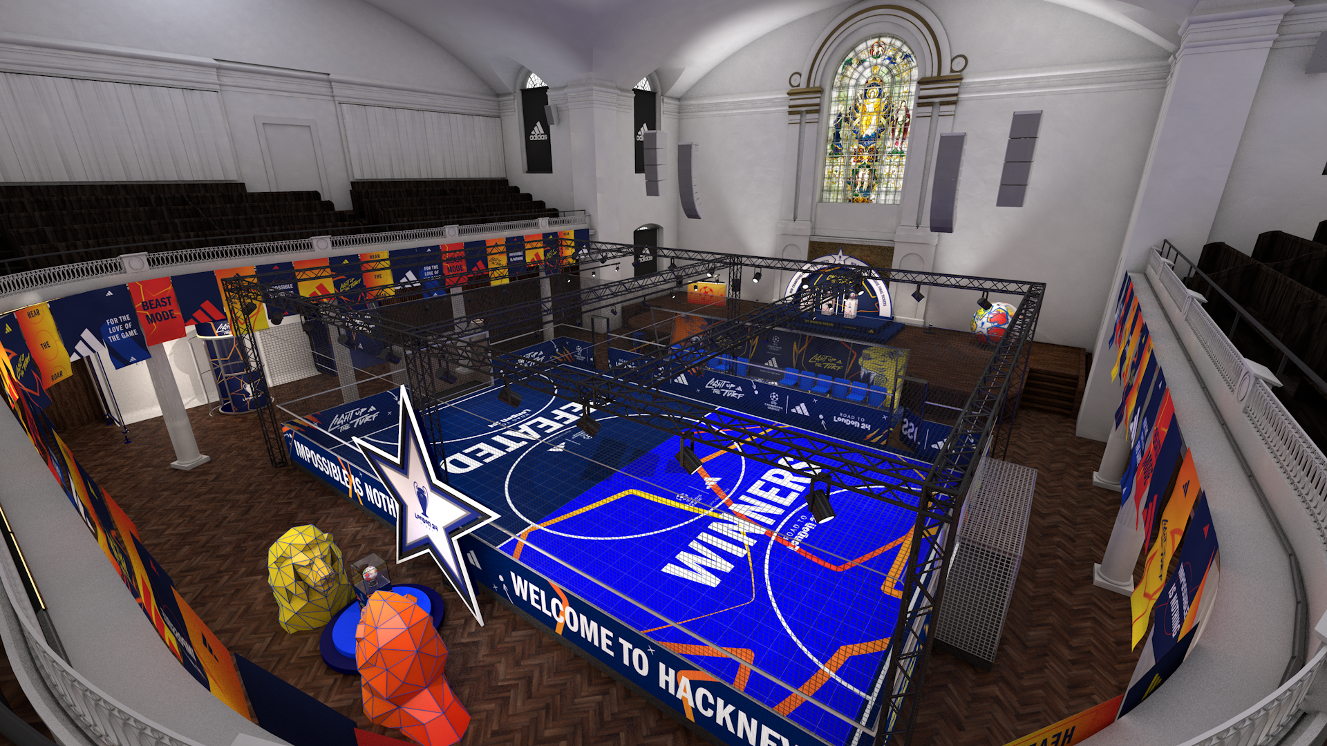 We created an engaging pop-up activation space within Hackney Church, designed to immerse football fans in the excitement of the Champions League Final. This vibrant hub will celebrate the spirit of the game, featuring interactive experiences, exclusive merchandise, and live screenings that unite the community and elevate the match-day atmosphere.